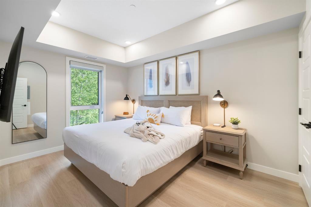 Looking to invest in the Rockies? Located just minutes from Canmore, this condo at Sparrowhawk Lodge offers everything you need: fully furnished including extras, smart layout, and unbeatable amenities. Situated creekside on the second floor, it captures serenity and privacy. Featuring two spacious bedrooms, a bright open living space, and full access to a heated pool, hot tub, underground parking, and storage locker. Surrounded by world-class trails and natural beauty, this property appeals to both guests and long-term value seekers. A turnkey opportunity in a growing community with strong rental demand.